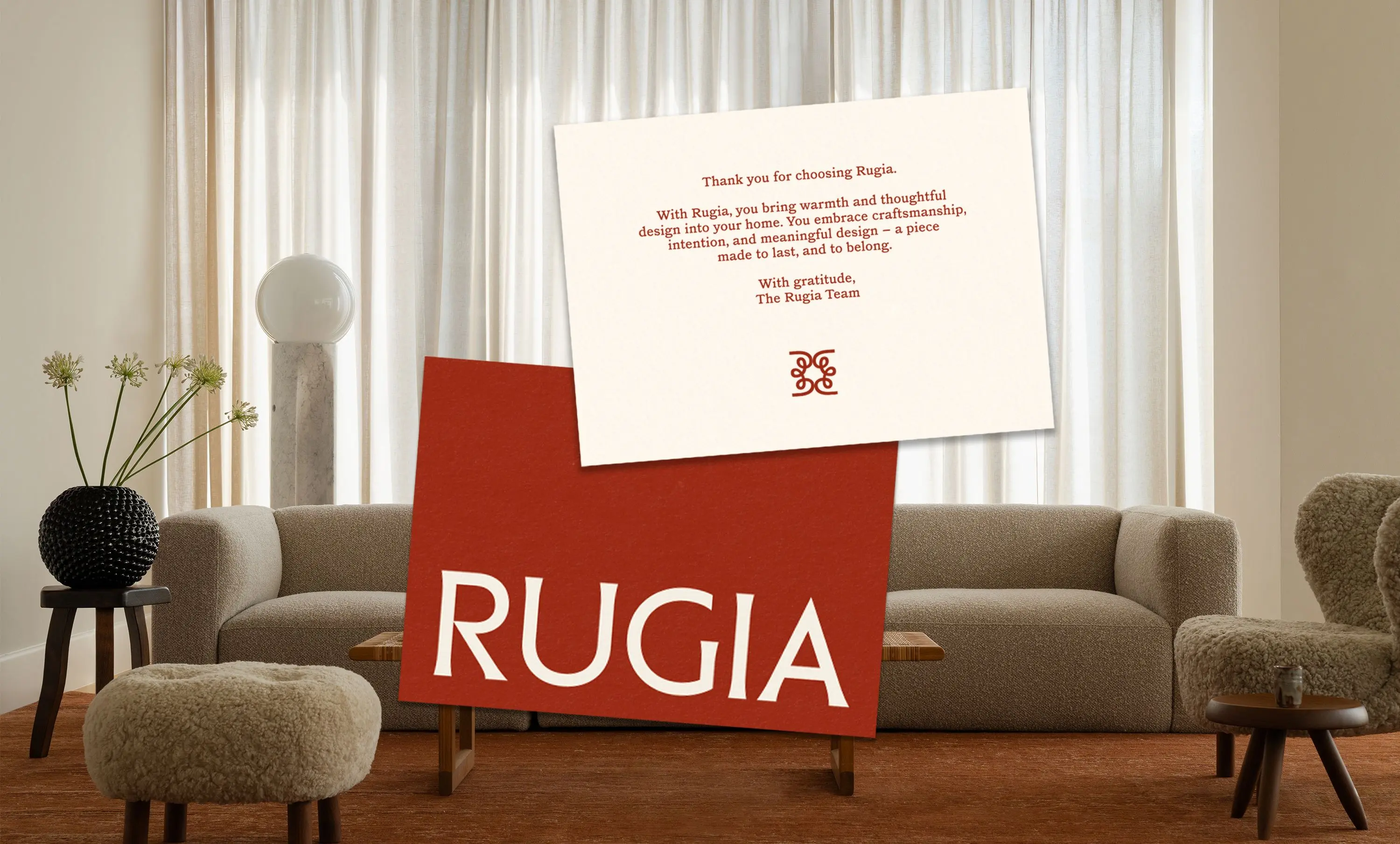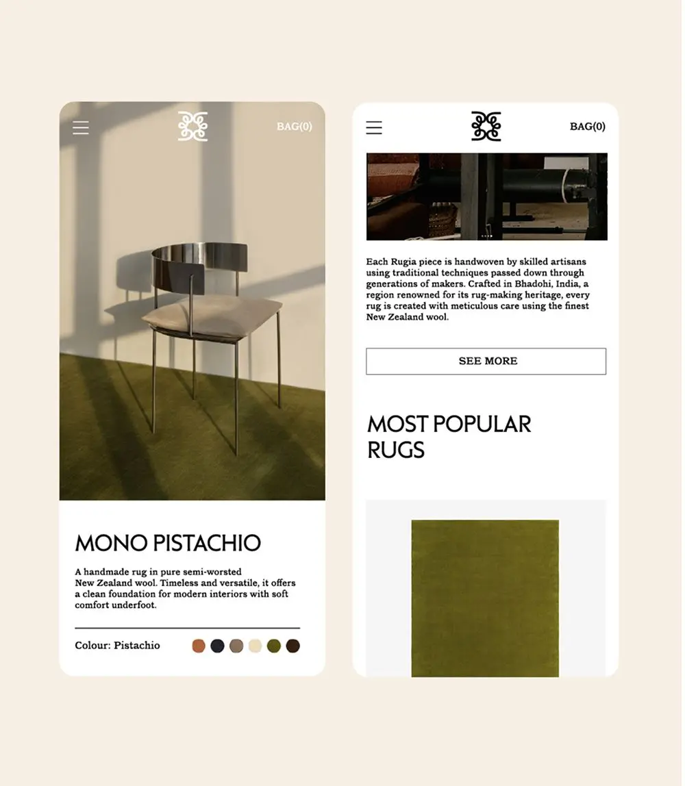 Its identity merges Scandinavian purity with the delicacy of Eastern craftsmanship. Inspired by the knots of handwoven rugs, Rugia embodies the perfect balance between technique and sensibility.